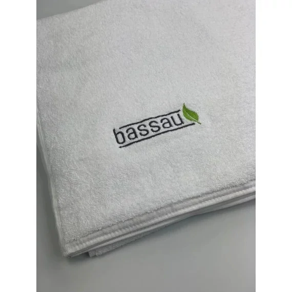 Das Handtuch ist mit dem Bassau-Logo bestickt.