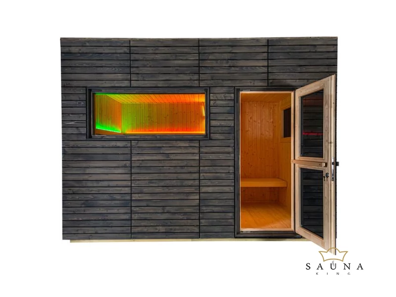 - Saunakabinenmaße: 196 × 196 cm – bietet bequem Platz für bis zu 5 Personen