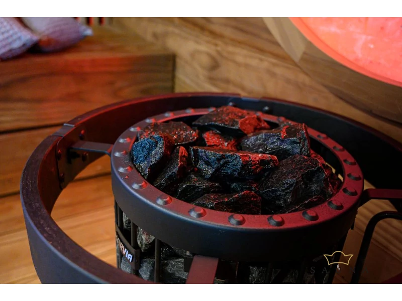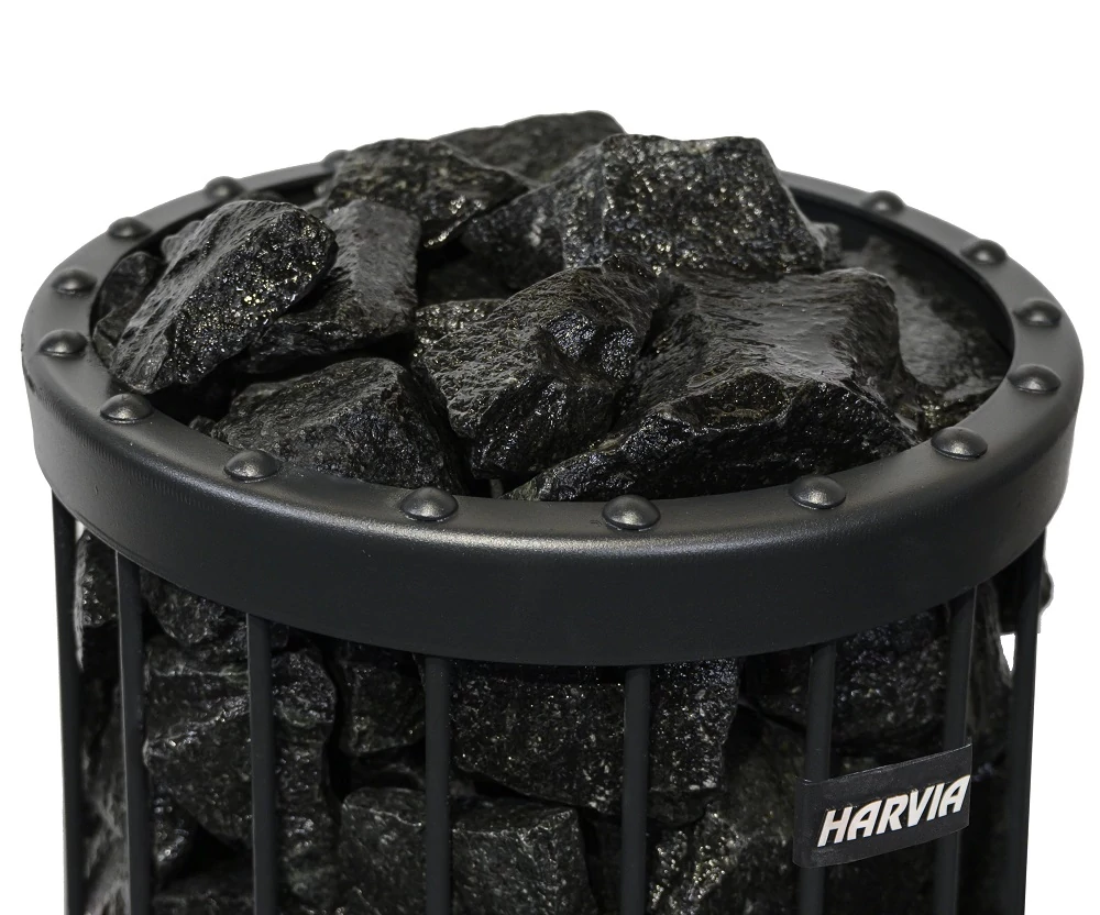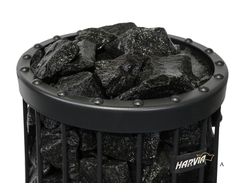 Saunaofensteine aus dunklem Vulkanit sind kleinkörnig und dunkelgrau. Nass glänzt der Stein schwarz, was ihn zu einem attraktiven Blickfang in ausgewählten Harvia-Saunaöfen macht. Der vulkanische Ursprung des Steins liegt ca. 2000 Millionen Jahre zurück. Aufgrund seiner Struktur und Zusammensetzung ist der Vulkanit die perfekte Wahl für einen Saunastein, da er hart und langlebig ist.