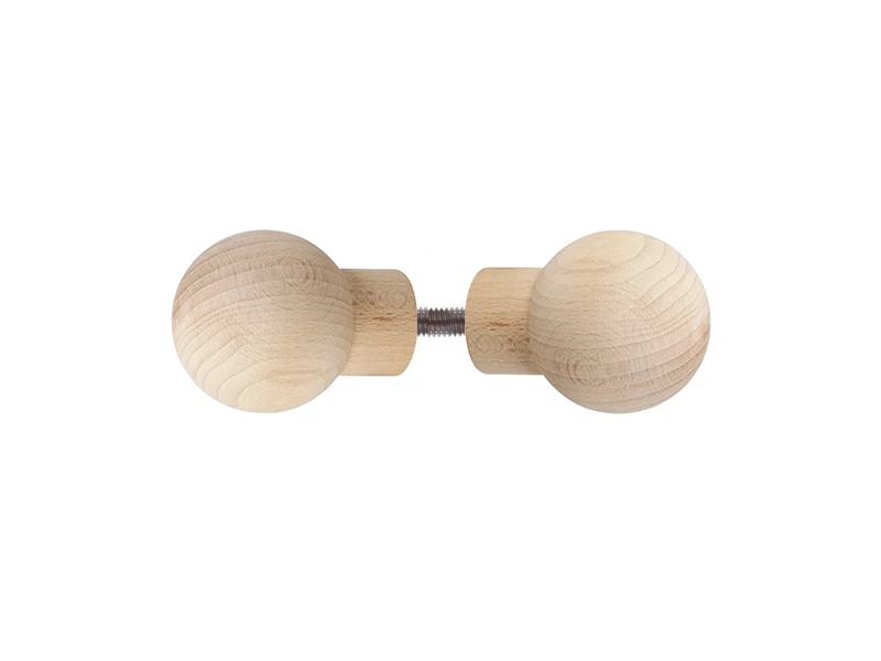 - 2 Türknäufe aus unbeschichtetem Holz mit eingeschraubten Metall-Gewindemuffe